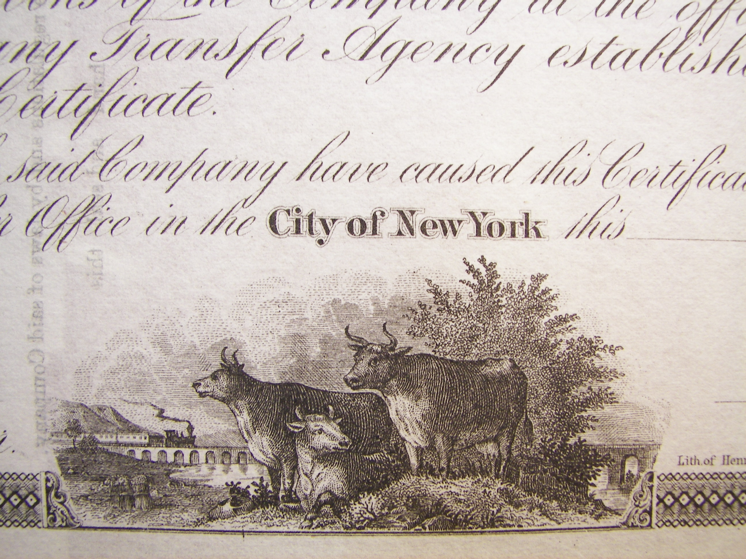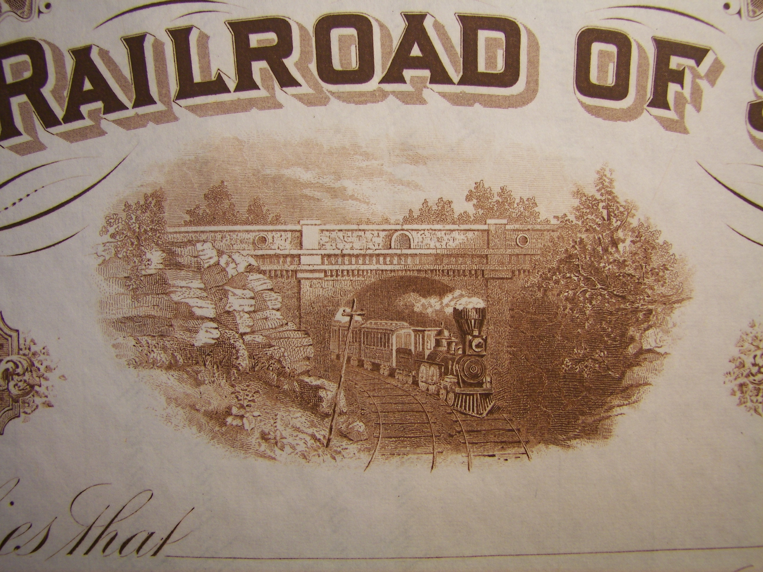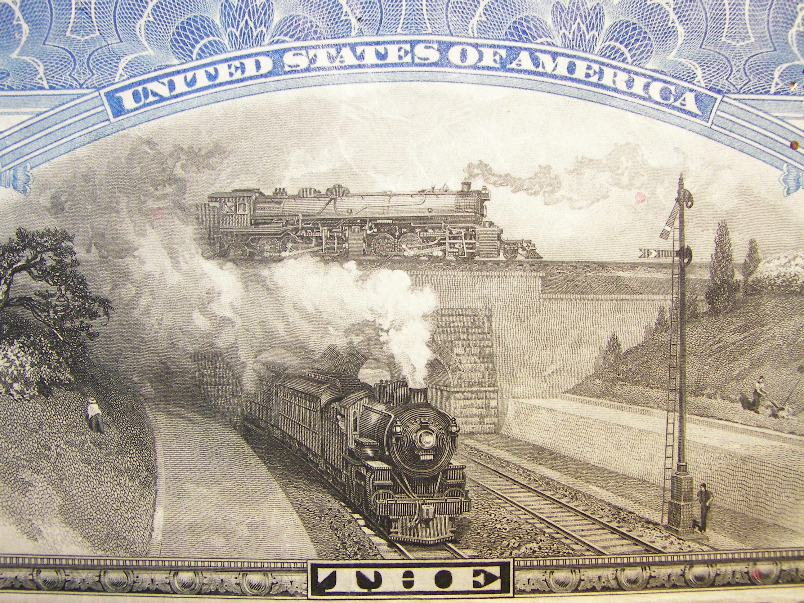 DamnYankee.com owns a collection of original stock certificates spanning the period from the mid-1800s to the mid-1900s. This collection is comprised mostly of certificates from American railroad companies, although a few are from other types of enterprises around the world.