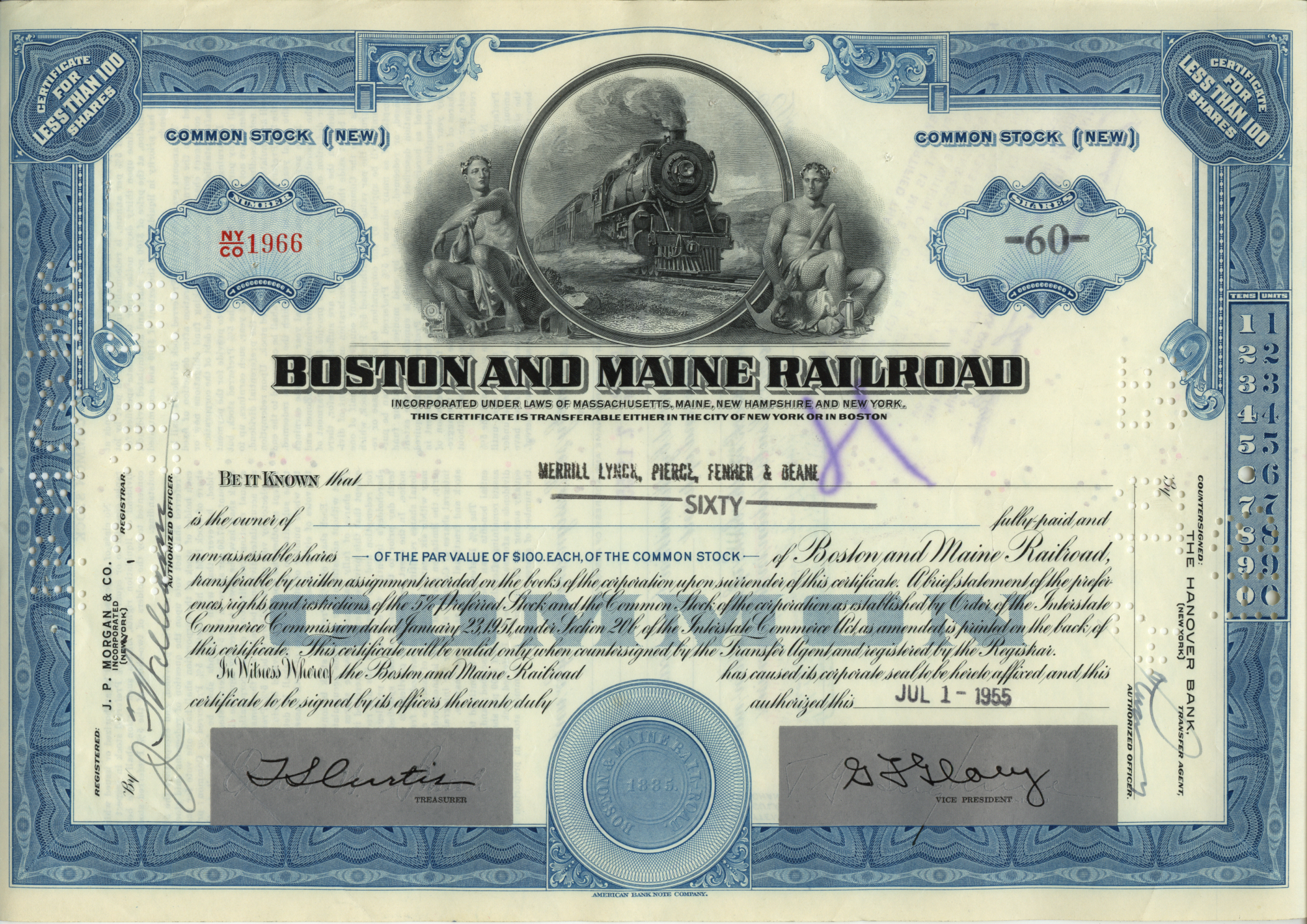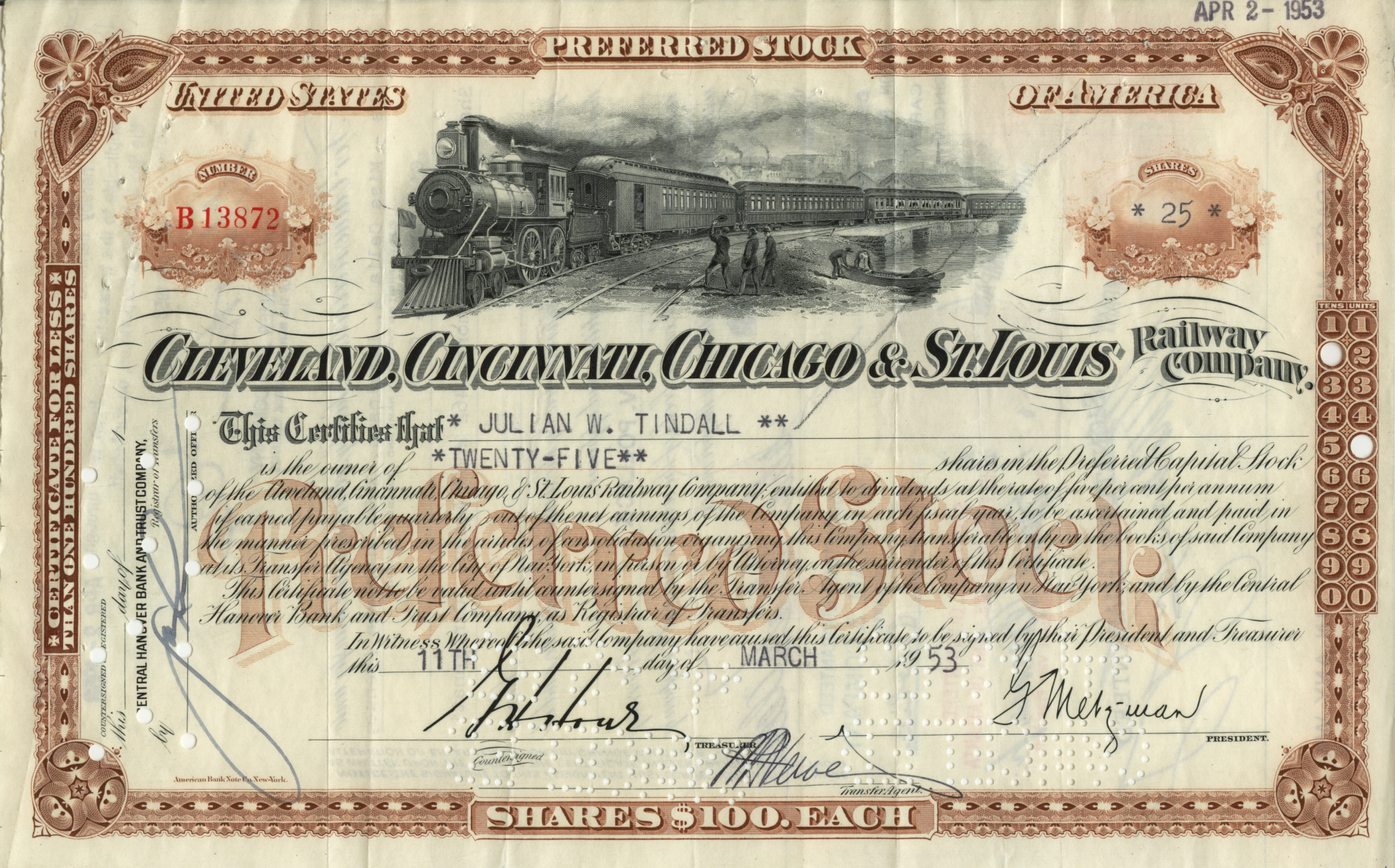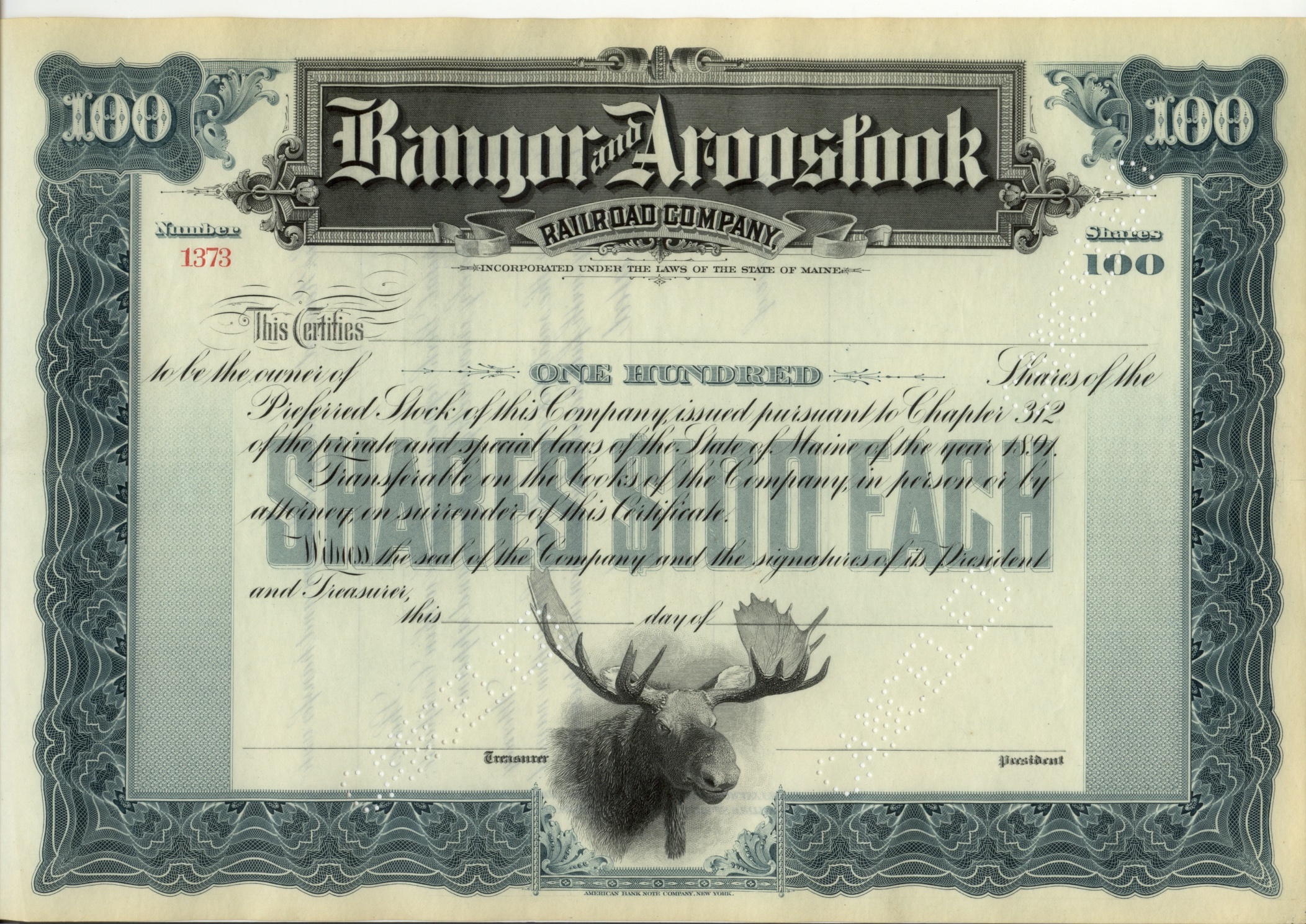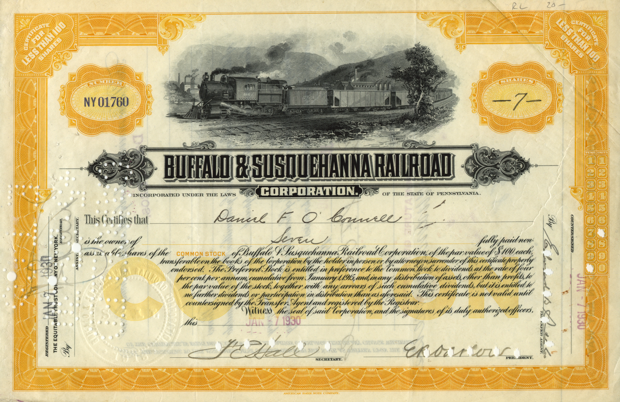 DamnYankee.com owns a collection of original stock certificates spanning the period from the mid-1800s to the mid-1900s. This collection is comprised mostly of certificates from American railroad companies, although a few are from other types of enterprises around the world.