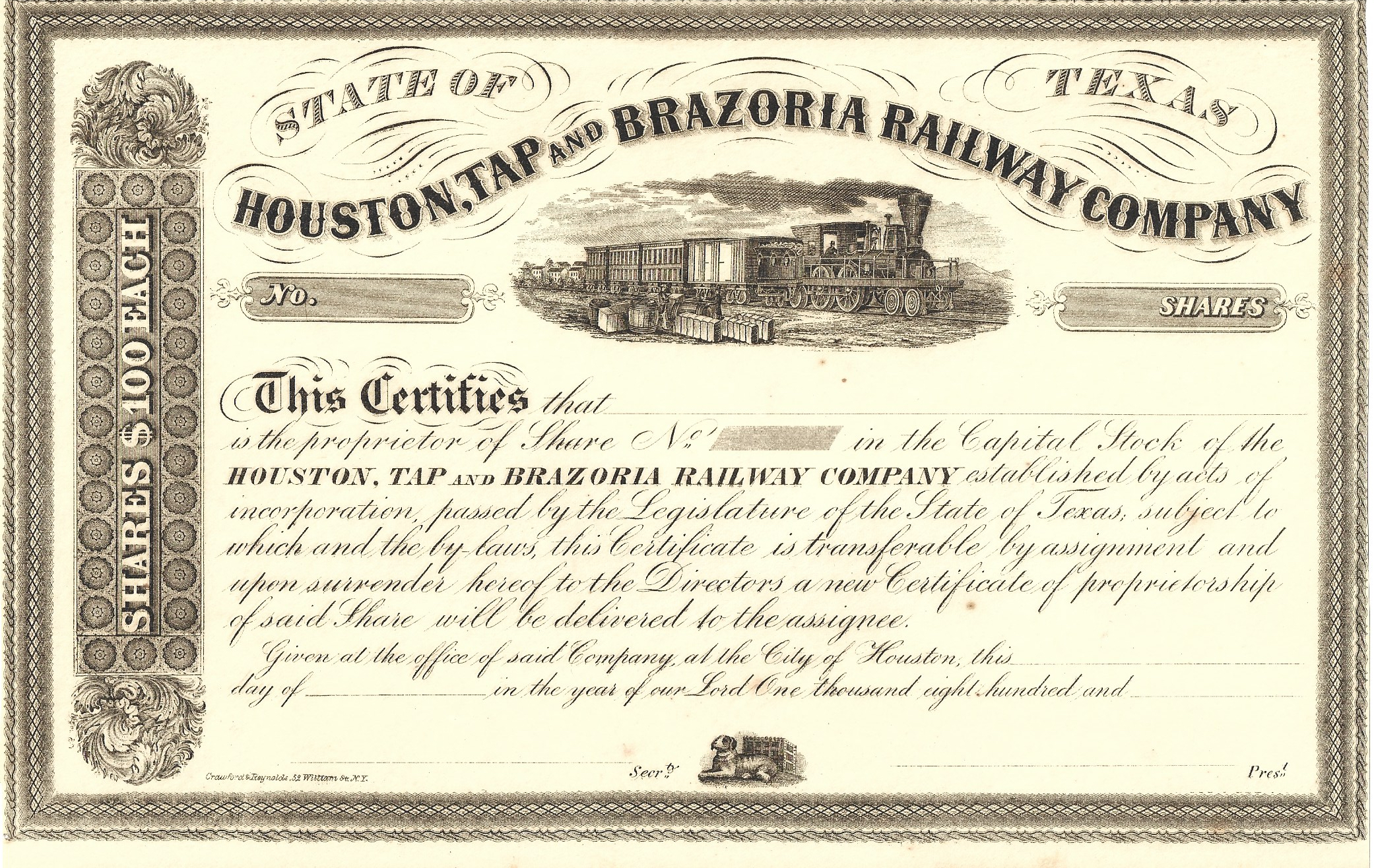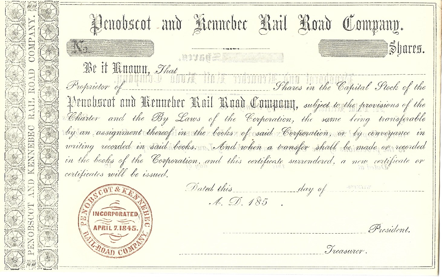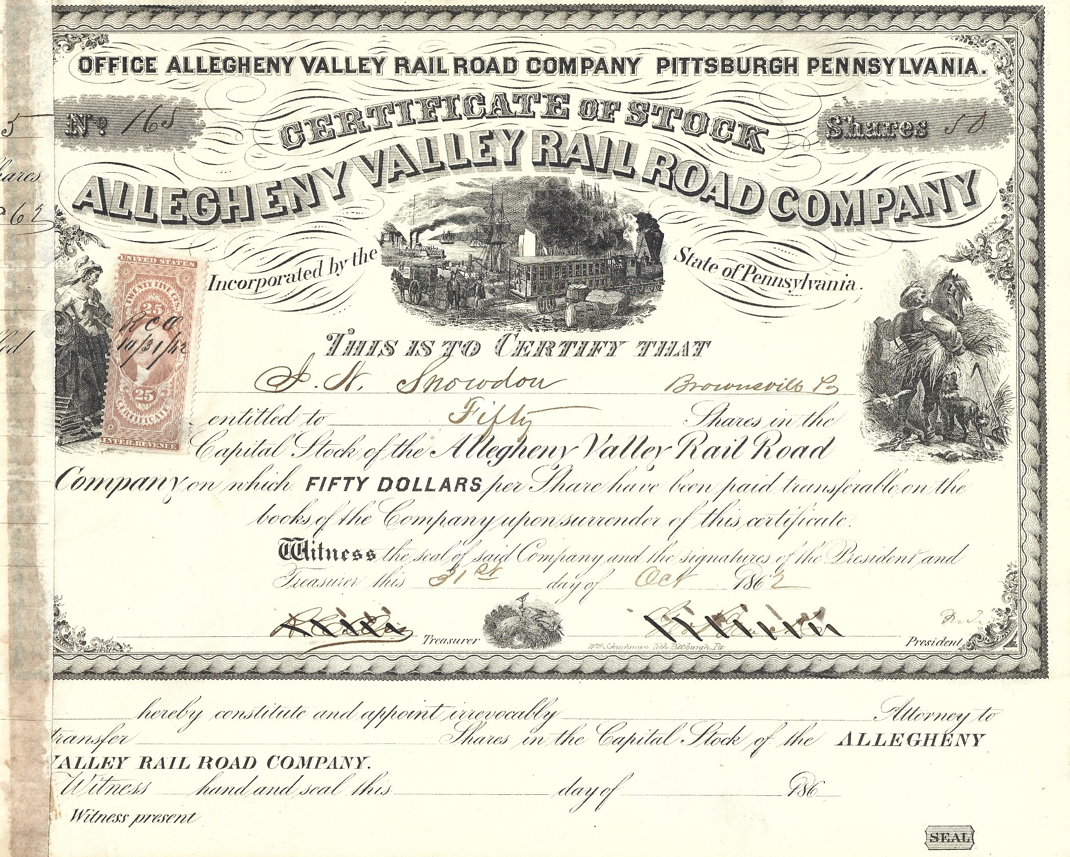 From a private collection, here is a representation of stock certificates from the 1840s to the 1970s. The collection centers around railroads but encompasses other industries as well. All are originals. Some are un-issued, some were issued and subsequently redeemed (cancelled). Most are nearly as interesting on the reverse side as on the obverse although only the obverse is shown here.