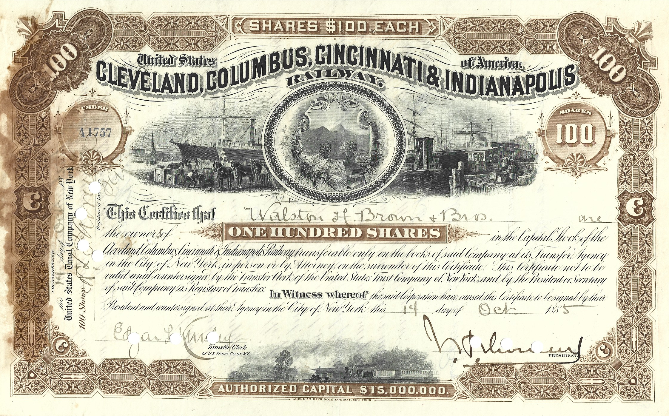 issued to Walston H. Brown and Brothers in 1885