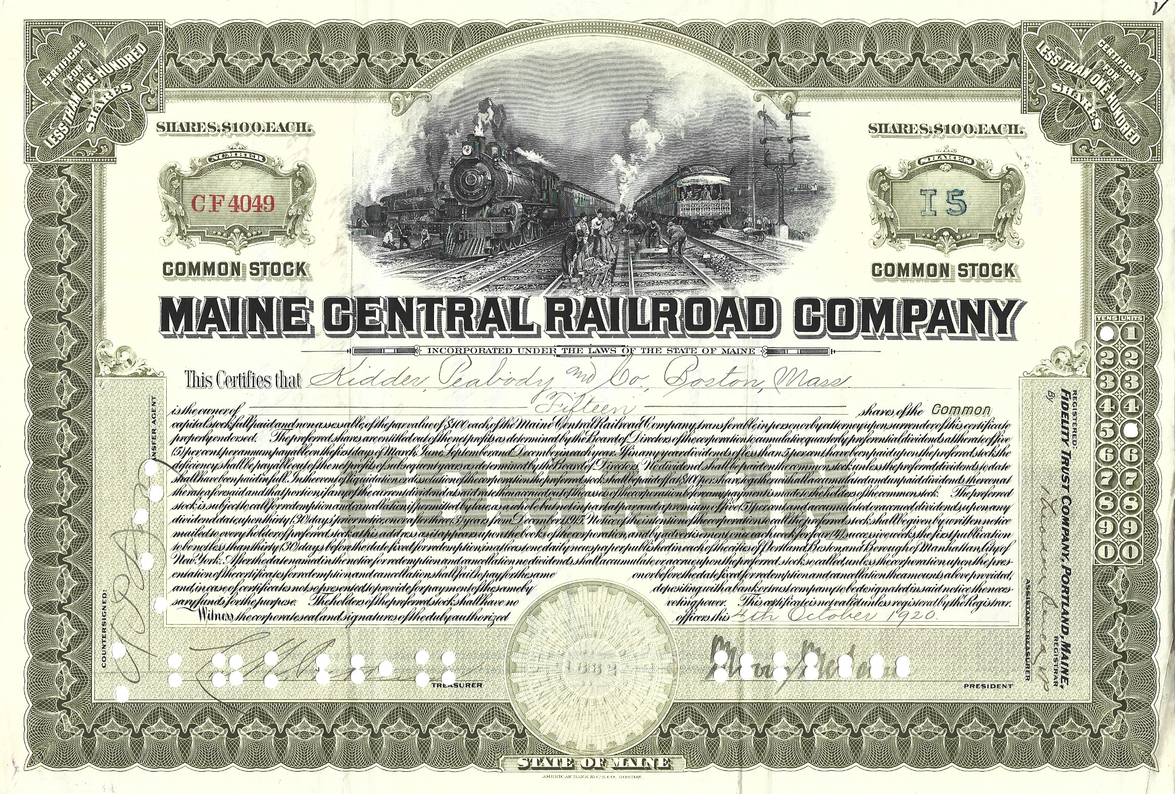 issued to Kidder, Peabody & Company in 1920