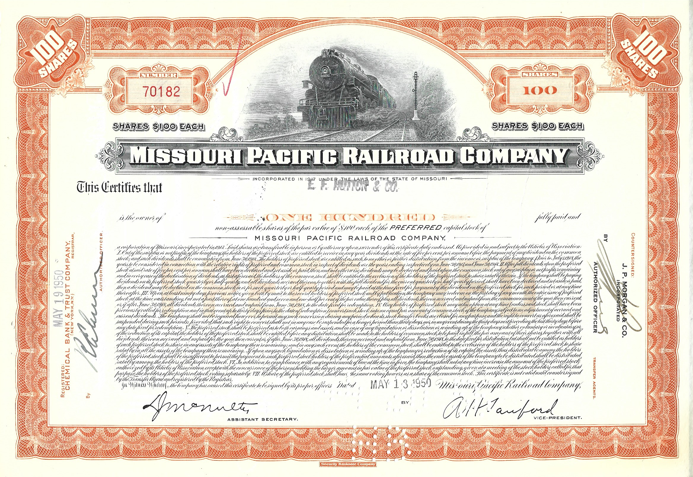 issued to E. F. Hutton & Company in 1950