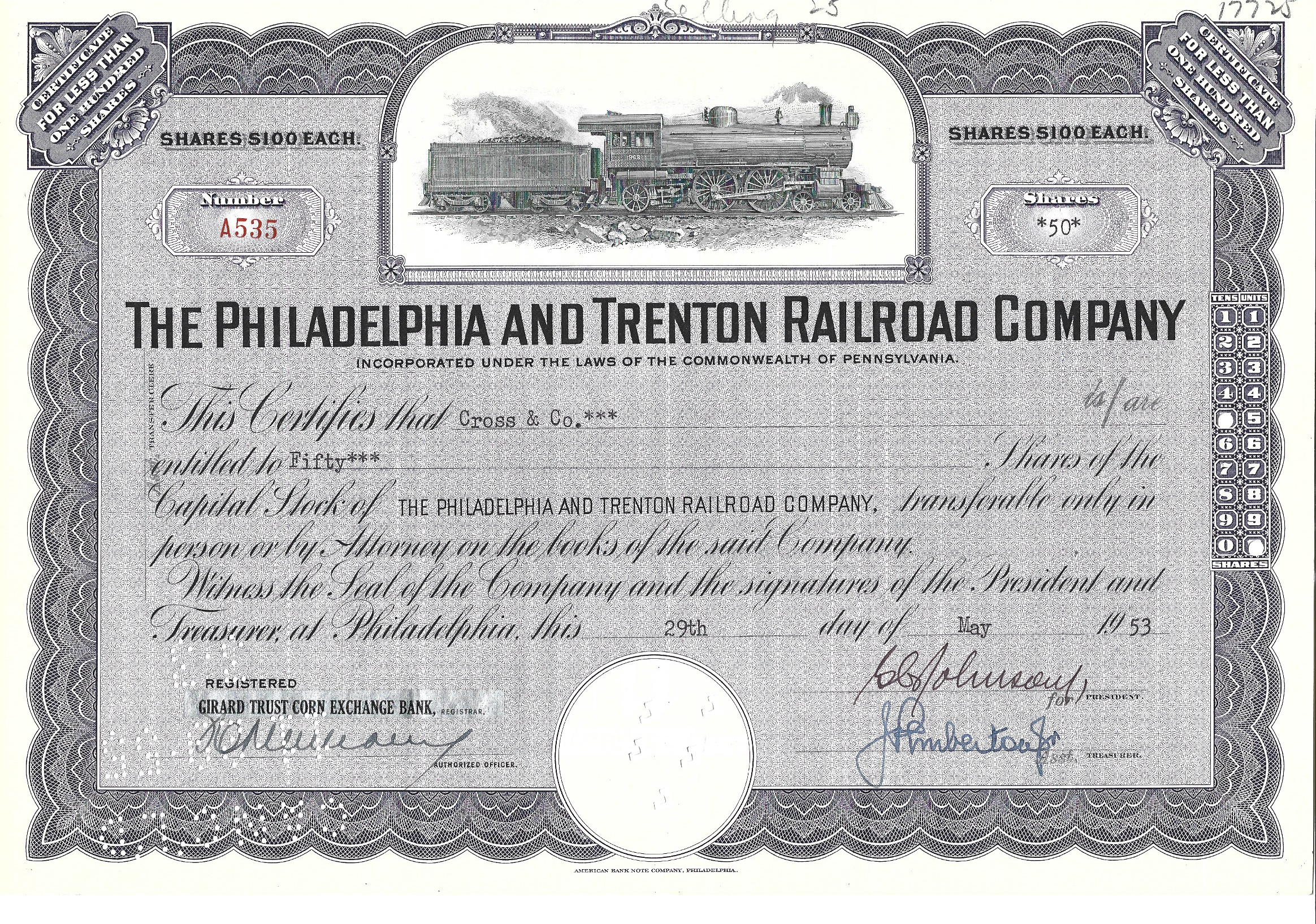 issued to Cross & Company in 1953