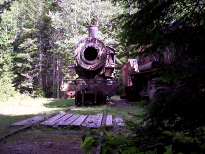 Let me add a few final words about the engines themselves. One is a 2-8-0, the other a 4-6-0, both apparently coal-burners. The cab on the 4-6-0 is missing. (The shed that had been built over them at one time burned in later years.) The other locomotive is intact, more or less.